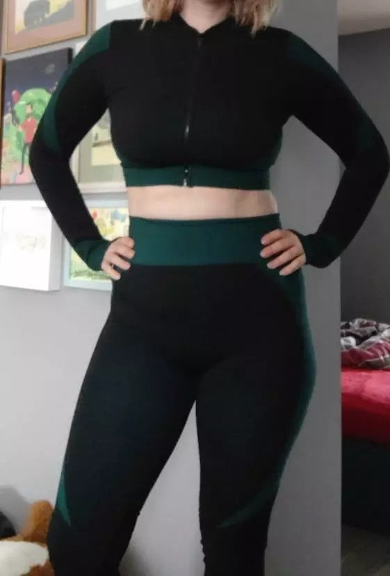Comes with Matching Sports bra, high waisted leggings and cropped jacket!
